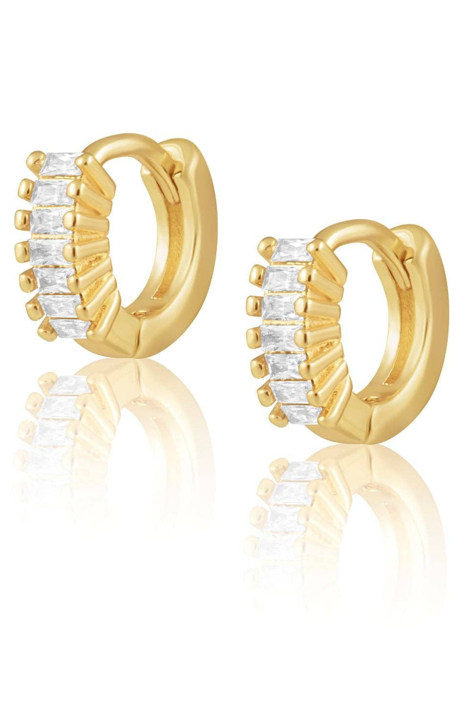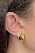 Feel glamourous when you wear our Viola Cz Huggie. The perfect earring for spicing up your outfit with a little bit of bling. Featuring stunning cz stones on 18k gold plating.