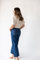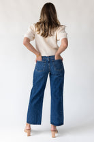 Not your basic blue jeans. A sculpted barrel-leg silhouette with a deep cuff and dark wash that feels equal parts modern and timeless.