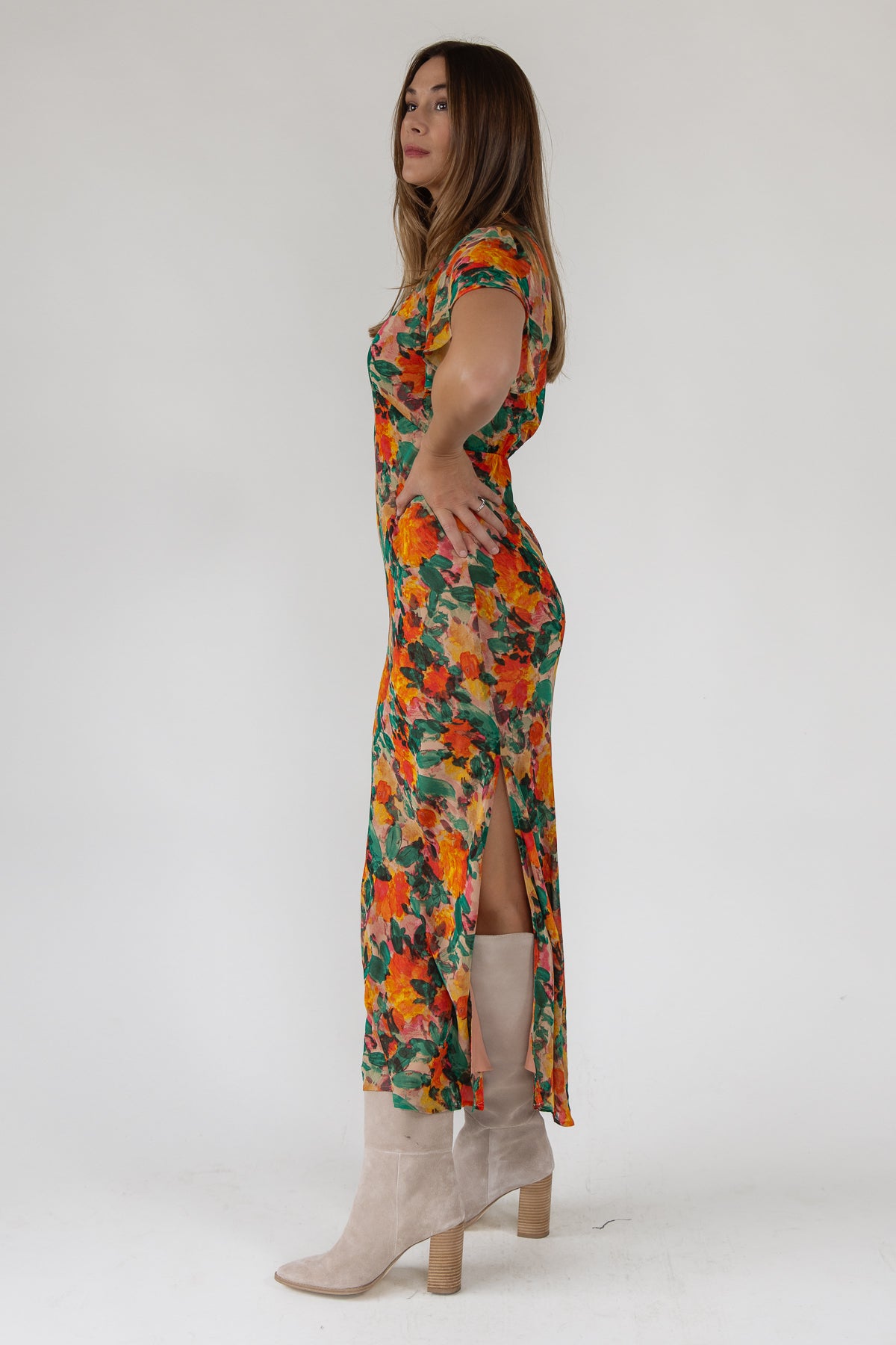 She’s bold, romantic, and ready for golden hour. The Paloma Floral Midi Dress blends timeless femininity with modern confidence — a floral midi that’s wedding-guest ready and effortless for fall weekends.