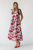 Make a bold statement in the Berklyn Roses Jacquard Midi Dress. With its vibrant floral jacquard and charming poplin ties, this dress is as romantic as it is eye-catching.