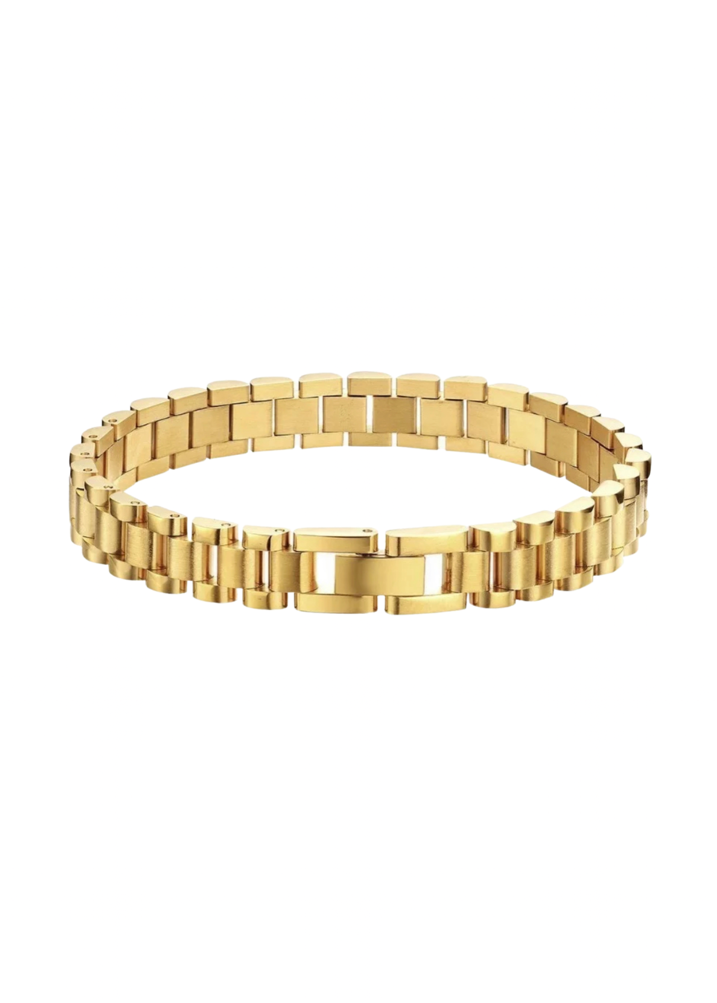 Elevate your accessory game with this Wristwatch Chain Bracelet, expertly crafted from durable stainless steel and finished with a luxurious 18k gold plating. Its fold-over clasp ensures a secure, comfortable fit that stays put throughout your day. Designed to complement both casual and formal looks, this bracelet adds a touch of timeless elegance while offering lasting quality and style. Perfect for everyday wear or special occasions, it’s a versatile piece that seamlessly blends function with fashion.