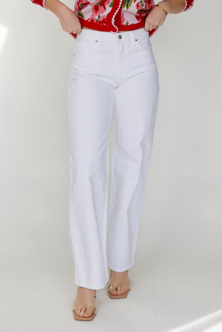 This is the white jean that always works. It has a clean, straight shape with a worn-in feel that makes outfits look intentional without trying too hard. Easy to wear, easy to repeat.