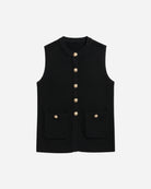 Timeless, neutral, and effortlessly chic — this black knit vest is the layering piece your closet needs. With vintage-inspired gold buttons and a softly structured fit, it’s the perfect blend of polish and ease.