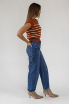 Modern stripes, neutral tones, and that just-right texture — the Reese Caramel Stripe Sweater is your go-to for that effortless fall uniform. Designed with an easy, sleeveless silhouette that pairs perfectly with denim or layers under your favorite coat.