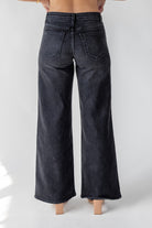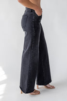 JO+CO black wide leg jeans, women's denim, mid rise ultra wide jeans, relaxed black denim made in USA