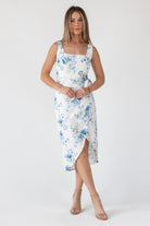 This elegant floral midi dress effortlessly combines charm and sophistication. With its linen-blend fabric and timeless print, it's perfect for spring events.