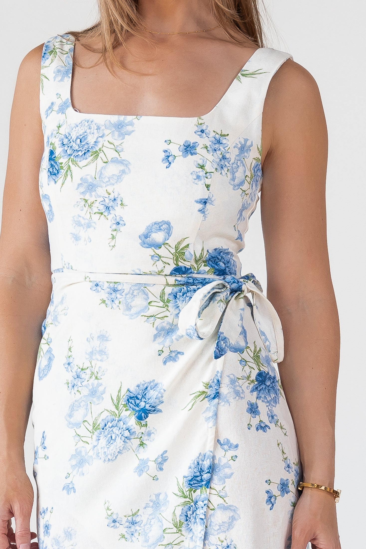 This elegant floral midi dress effortlessly combines charm and sophistication. With its linen-blend fabric and timeless print, it's perfect for spring events.