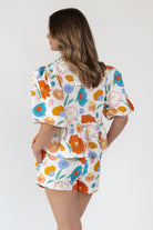 Design: Allover hand-painted floral print with voluminous puff sleeves