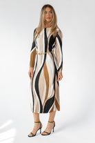 Selah Mocha Wave Print Maxi Dress - Final Sale