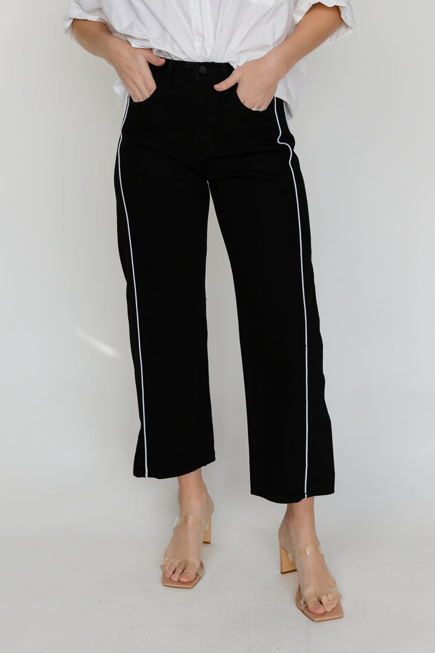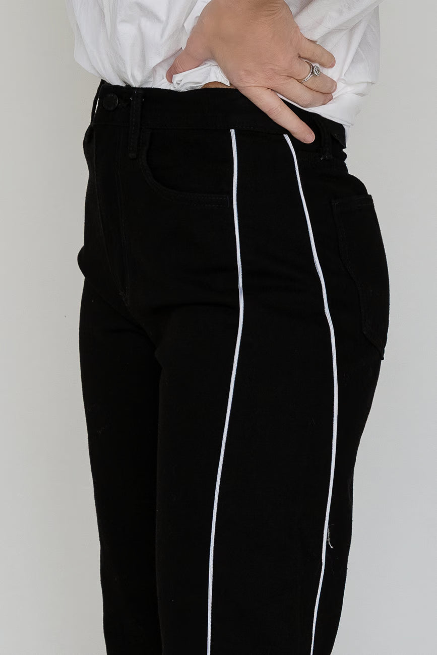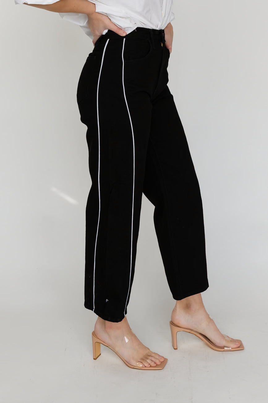 For when you want denim that feels intentional without feeling like a whole thing. These have a structured shape that holds its own, with a barrel leg with a white piping detail that feels modern but easy to wear. The black-and-white finish adds interest without pushing it too far. Once they’re on, the rest of the outfit tends to fall into place.