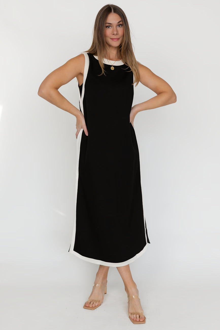 This is the kind of dress that just works. Clean lines, soft contrast, and a shape that feels pulled together without effort. One piece, no planning required.