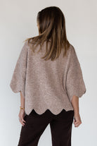 Soft texture meets feminine detail—this relaxed taupe knit is the kind of sweater you’ll reach for season after season.